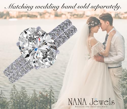 NANA Jewels 1.5-3CT Platinum Plated Sterling Silver Rings CZ Cubic Zirconia Oval Cushion Princess Asscher Cut Engagement Rings 10K 14K Solid Gold