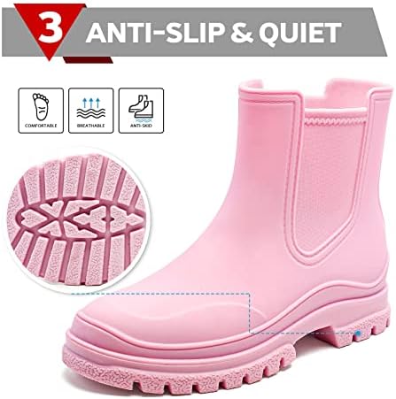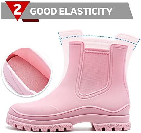 Hsttgsr Women's Rain Boots, Comfortable Elastic Adult Ankle Booties, Fashion Mid Heel Chelsea Boots, Waterproof Non-Slip Chunky Platform Lug Sole Short Garden Boots