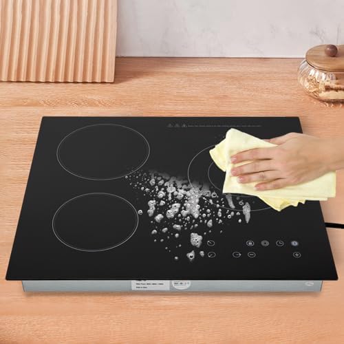 2600W 110V Electric Ceramic Cooktop Portable 3 Burners Built-in Cooktop Sensor Touch Control Countertop Electric Hot Plate with Kid Safety Lock and Timer, 9 Heating Level(no plug)