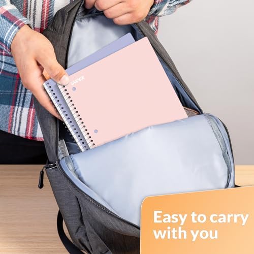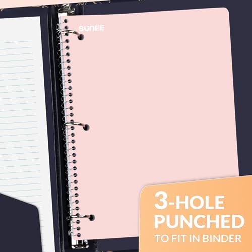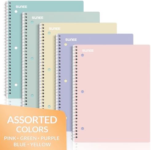 SUNEE Spiral Notebooks, 1-Subject, 5 Pack, College Ruled Paper, 8" x 10-1\/2", 70 Sheets per Notebook,3-Hole Punched Paper, Pink,Purple, Blue, Green, Yellow Spiral Lined Notebooks for School,W