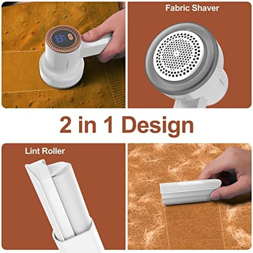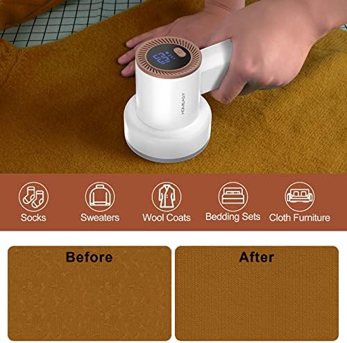Fabric Shaver Fuzz Remover Rechargeable, HOMEASY Electric Lint Remover Shaver with 3 Blades & LED Digital Display, Sweater Couch Fabric Pill Shaver for Sweater, Couch, Furniture (White)