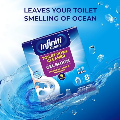 Infiniti Clean Toilet Gel Stamp - 8 Packs Toilet Bowl Cleaner Gel with Automatic Click, Freshener for Toilet Maintenance, 3.4oz, 6 Month Supply (Ocean)