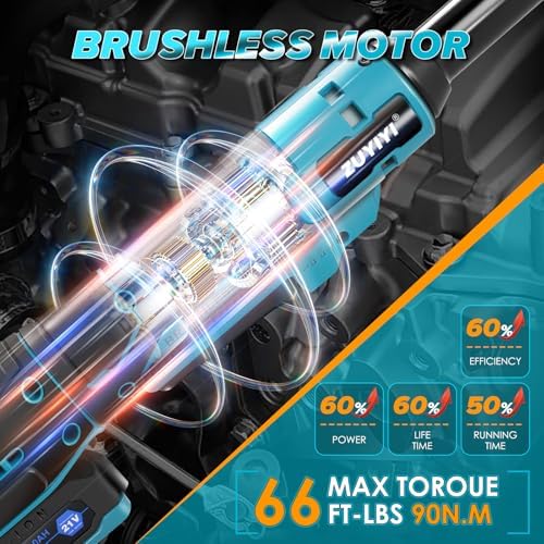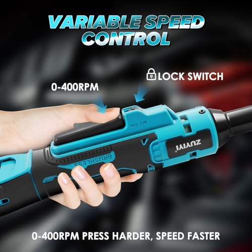 ZUYIYI 3\/8" Cordless Electric Ratchet Wrench Set, 66Ft-lbs 6.3" Extended Long Neck Ratchet Wrench, 400RPM 21V Power Torque Ratchets, 2x 2.0Ah Batteries & Charger, 6 Sockets, 1\/4" Ada