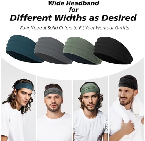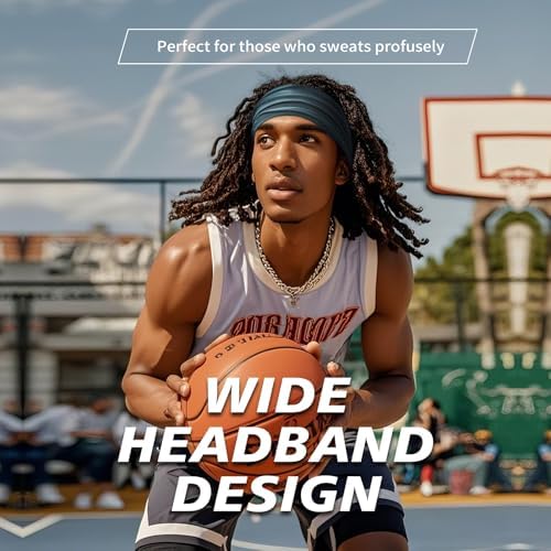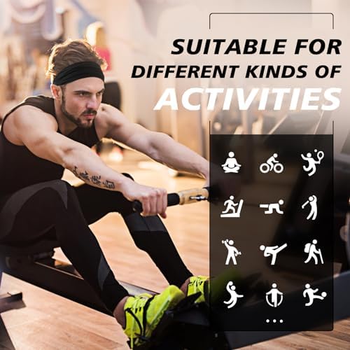 Rheytew Wide Headbands for Men, Men\u2019s Headbands for Long Hair, Head Bands for Men for Workout, Running, Baseball, Football, Tennis, Basketball, Softball, 8 Pieces