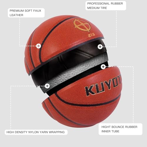 KUYOTQ Kids Toddler Youth Adult Size 3\/4\/5\/6\/7 Basketball 22\/25.5\/27.5\/28.5\/29.5" Thickened Rubber or Faux Leather Basketball for Boys Girls Womens Mens (Deflated)