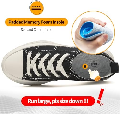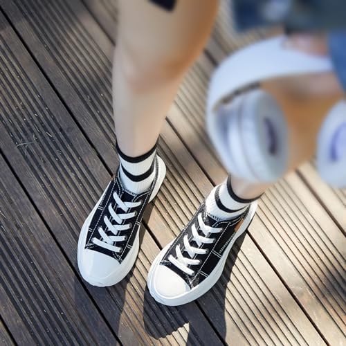 ZGR Women's Low cut Thick soled Sneakers, White Canvas Sneakers, Casual Thick soled Tennis Shoes