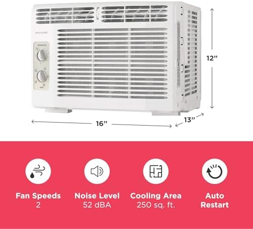 Frigidaire 5,000 BTU Window-Mounted Air Conditioner, Cools Up to 250 Sq. Ft., Quiet Operation, Effortless Temperature Control, 2 Fan Speeds, Auto Restart, White