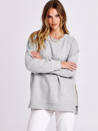 ANRABESS Women's Oversized Sweatshirts Crewneck Long Sleeve Tunic Pullover Shirts Side Zipper Hoodies 2025 Fall Clothes