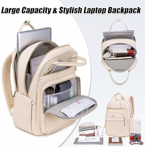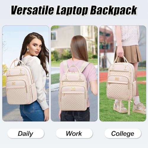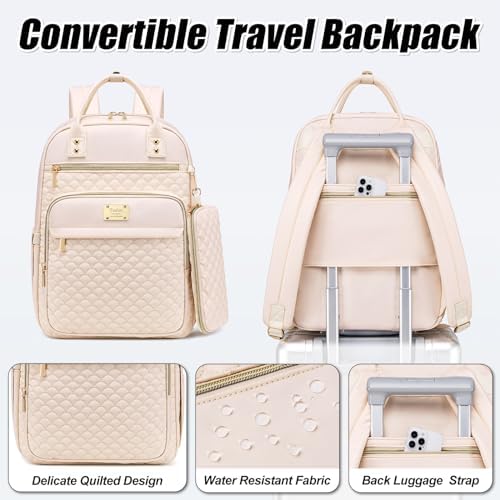Tealari Laptop Backpack for Women,15.6 Inch Laptop Backpack for Work,Water Resistant Travel Backpack,College Bookbag with Wallet (Beige)
