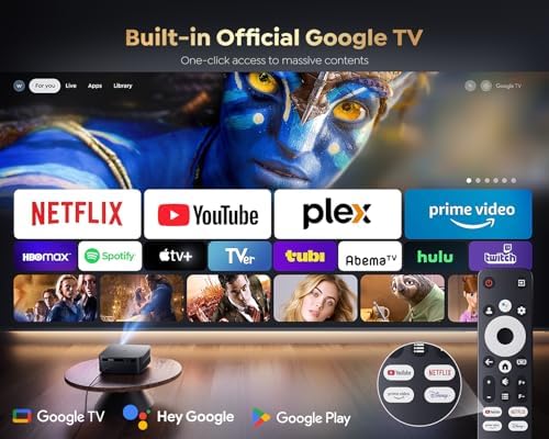 [1500 ANSI\/Google TV\/Voice Control]Smart Projector with WiFi 6 and Bluetooth, Netflix-Licensed 4K Support, Outdoor Movie Proyector, 1080P Home Ceiling Auto Focus Projector, PUTRIMS K12 Gray