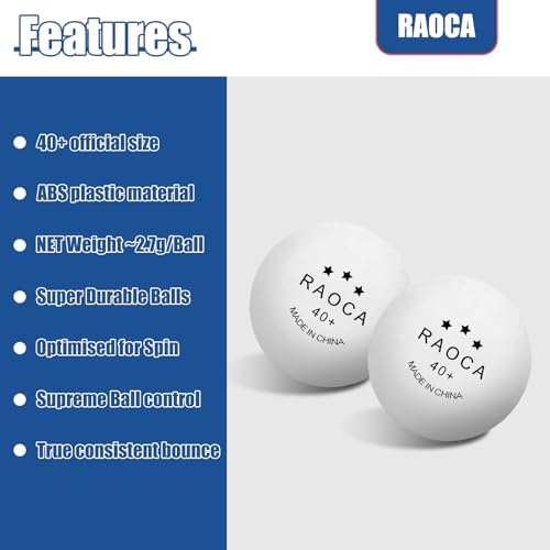 Raoca Ping Pong Balls 3-Star Table Tennis Balls, 40+ ABS Outdoor and Indoor Ping-Pong Balls for Training