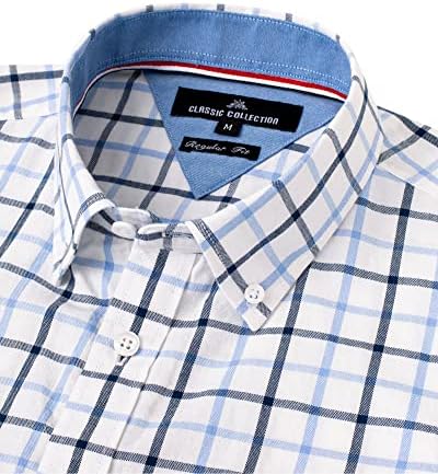 Alimens & Gentle Men's Plaid Button Down Shirts Cotton Long Sleeve Dress Shirts Regular Fit Gingham Shirts