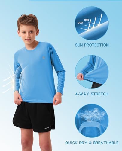 Boys Girls Long Sleeve Sun Shirts Rashguard UPF50 UV Quick Dry Athletic Hiking Fishing Golf Workout Play Water Size 6-14
