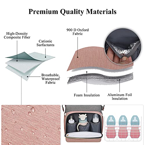 ANWTOTU Diaper Bag with Changing Station,Diaper Bag Backpack,7 in 1 Travel Baby Diaper Bag,Mommy Bag With USB Charging Port (Pink-Grey)