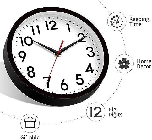 DAXSMY 0.48cm Wall Clock Silent and Non ticking Battery Powered Analog Clock Decoration Suitable for Office Kitchen Outdoor Living Room Classroom Bedroom Bathroom School (Black)