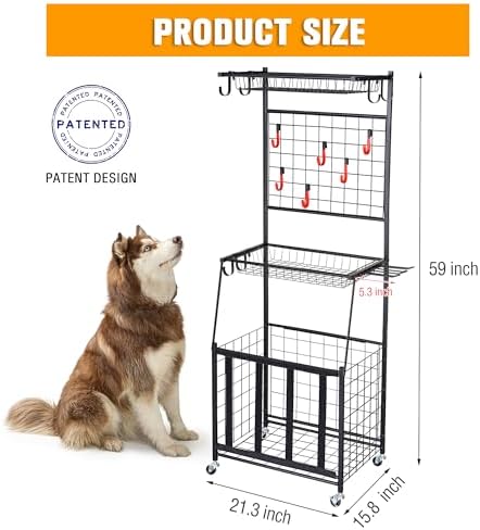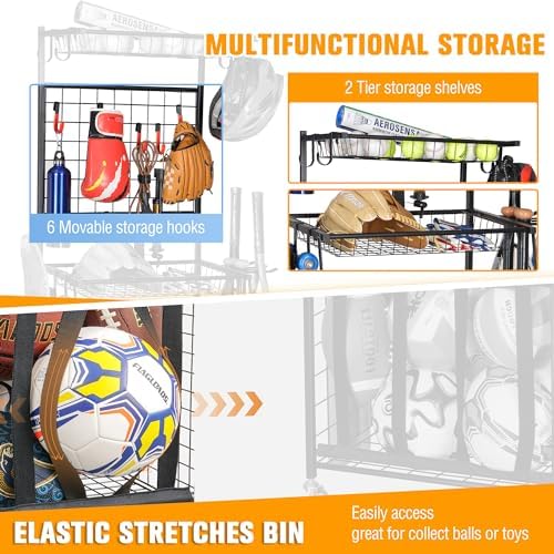PLKOW Sports Equipment Storage for Garage, Indoor\/Outdoor Sports Rack for Garage, Ball Storage Garage Organizer with Basket and Hooks,Toy\/Sports Gear Storage