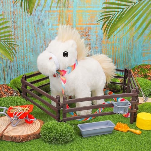 Tagitary Plush Toys Horse for Kids, Interactive Plush Toys with Leash,Can Make Sounds,Walk,and Wag Tail,Stuffed Horse Realistic Pet for Boys Girls