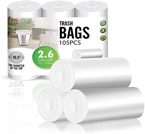 Charmount Small Trash Can Liners, Garbage Bags for Bathroom, Kitchen, Office, Bedroom, 2.6 Gallon, Unscented,105 Counts (White) \u2026
