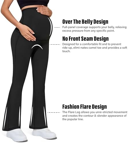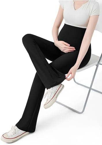 KEEPGYM Maternity Flare Leggings Over The Belly - Buttery Soft Pregnancy Bell Bottom Pants for Lounge Yoga Casual