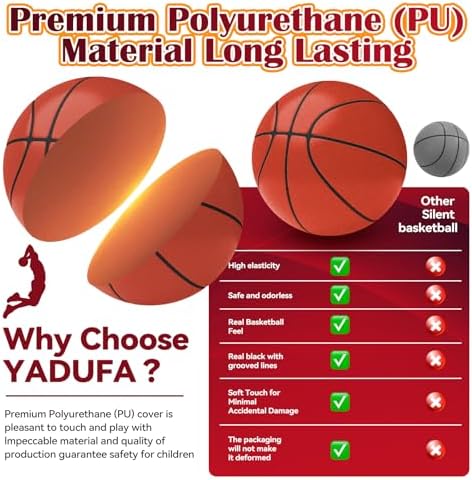 Yadufa Silent Basketball Size 7 2025 New Indoor Foam Silent Training Ball Grooved Airless Foam Technology Real Basketball Feel for Quiet Dribbling and Indoor Training