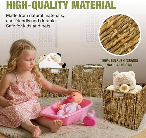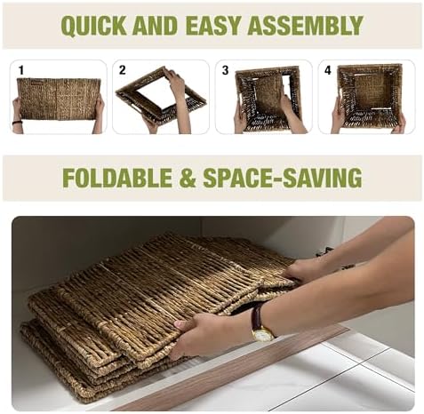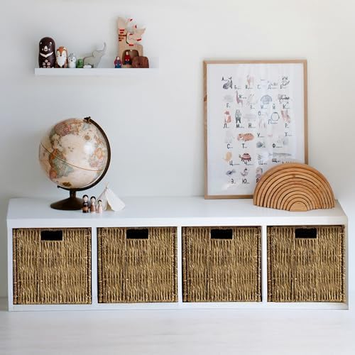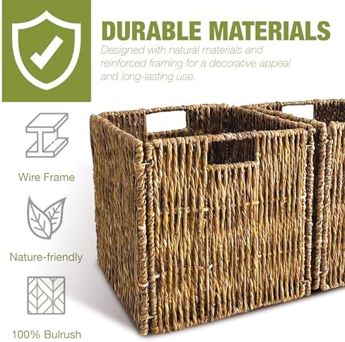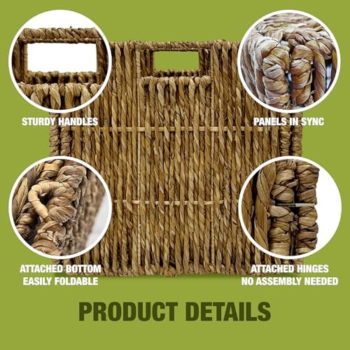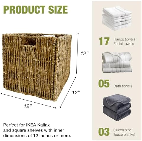 4 Pack Collapsible Storage Bins - 12x12 Wicker Storage Cubes, 12 inch Storage Baskets For Organizing, IKEA Shelves, Kallax Inserts, Closet, Office \u2013 Foldable Storage Basket For Shelves, Toys, Clo