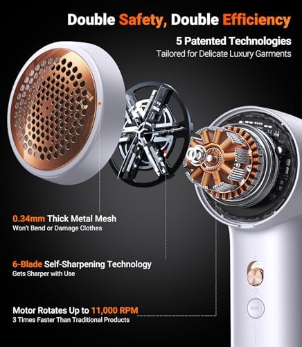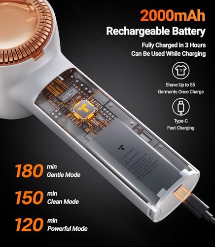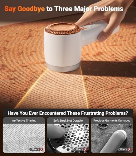 TORRAS Fabric Shaver Lint Remover, Rechargeable Electric 3-Speed Sweater Shaver Remove Fuzz, Pilling for Cashmere, Wool, Coat, Furniture, Clothes depiller with Replacement Blades, Pearl White