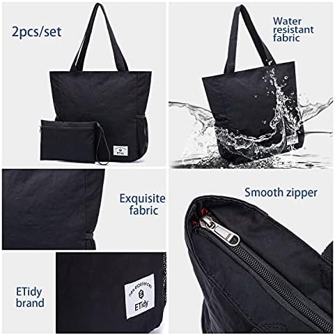 ETidy Large Capacity Foldable Tote Bag With Zipper Water-resistant SandproofWomen Beach Bag Handbag GymBag Travel ShoppingBag