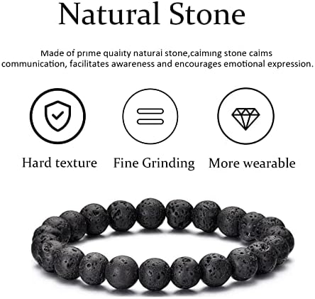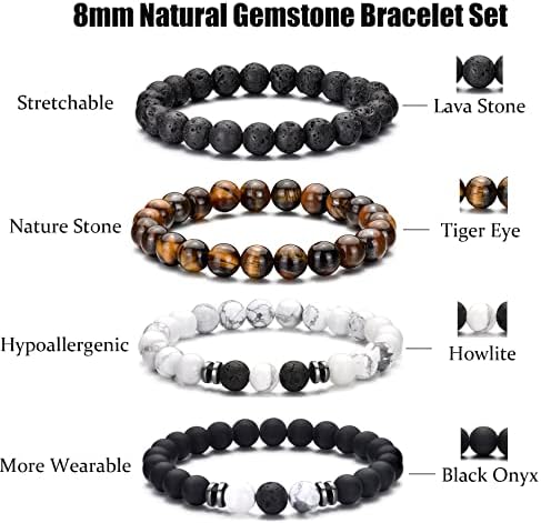 RANKEEF Tiger Eye Bracelet For Men 8MM Natural Stone Stretch Adjustable Black Crystal Beaded Bracelet for Men Women Gifts