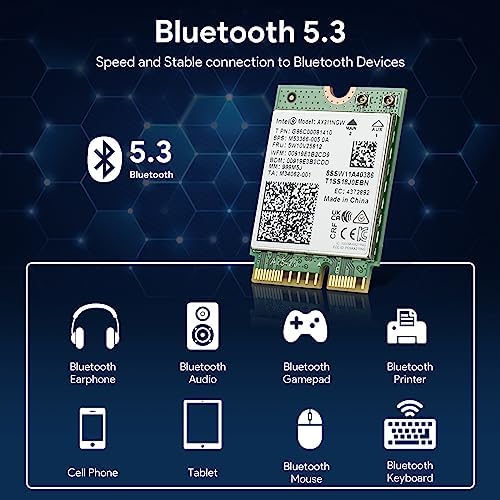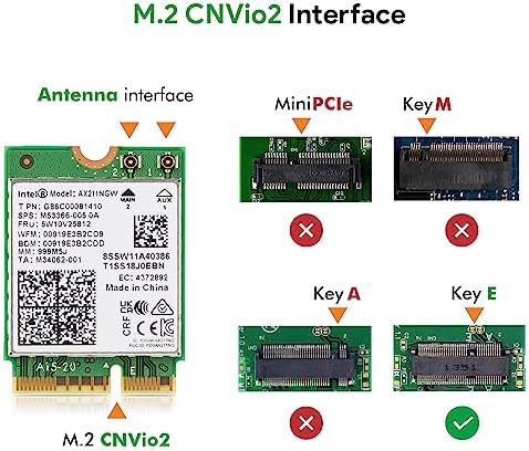 Intel AX211NGW Wi-Fi 6 Wireless Card M.2: CNVio2, Bluetooth 5.3, Tri Band 2.4\/5\/6 GHz Network Adapter for Laptop Support Windows 10\/11 (64bit) Linux Chrome OS Only Available with Gen Intel 12+ CPU