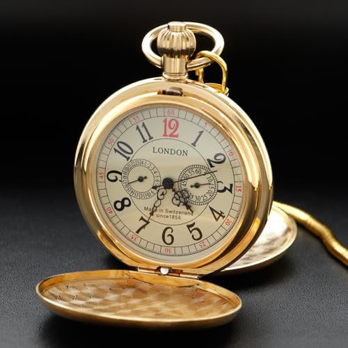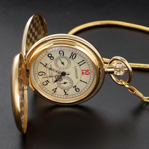 Alwesam Copper Pocket Watch Steampunk Mechanical London Hand Wind Mens Watches with Chains & Boxs