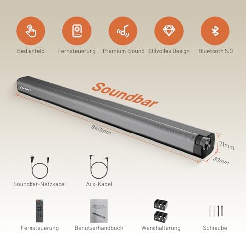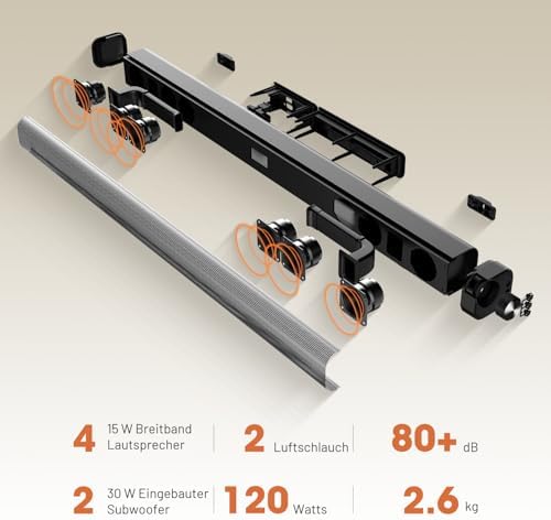 Chaowei Sound Bar for Smart TV 37 Inch 120W Bluetooth 5.0 Speaker with Builtin Subwoofers, 2.1Ch 3D Surround Sound System with 8 Speakers,7 Sound Modes,4EQ,AUX\/HDMI ARCOPT\\USBBT Connect