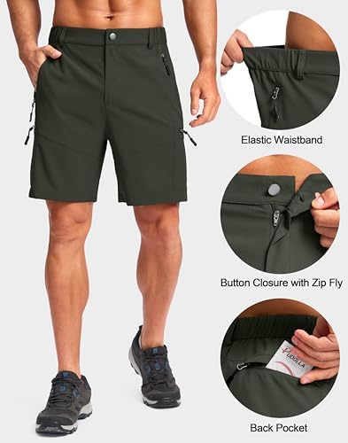Pudolla Men's Hiking Cargo Shorts Lightweight 7" Travel Casual Shorts for Men Golf Work Outdoor with 5 Zipper Pockets