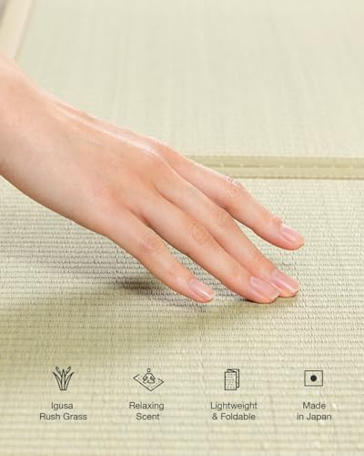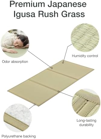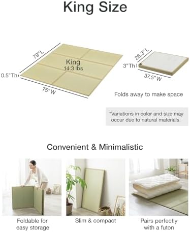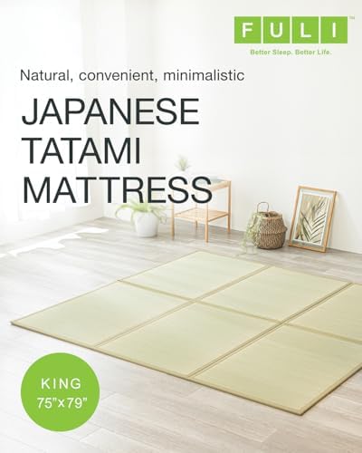 FULI Japanese Tatami Mattress, Tatami Rug, Igusa Mat (Japanese Rush Grass) Foldable, Made in Japan (Natural, King)