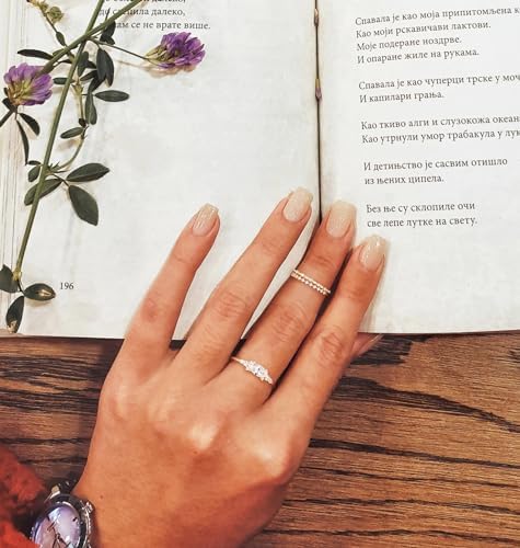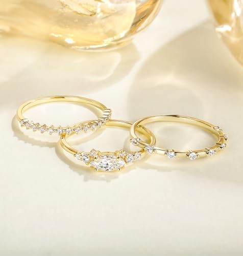 TIGRADE 14K Gold Plated Stacking Rings for Women Minimalist Fashion Knuckle Thin Band Marquise & Round Cubic Zirconia Statement Ring Set Size 3-13