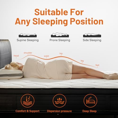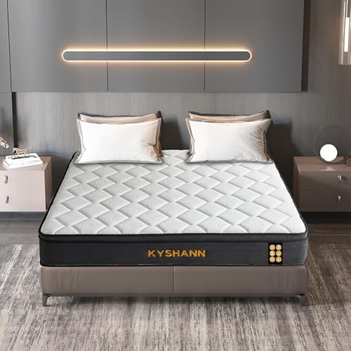 KYSHANN Queen Mattress, 12 Inch Queen Hybrid Mattress in a Box, Upgrade Individually Pocket Springs, Medium Firm, Pressure Relief, Breathable Comfort and Durable, 365-Night Trial, 10-Year Warranty