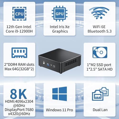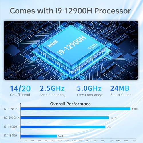 msecore Mini PC with i9-12900H 64GB RAM 1T PCIE4.0 SSD, Mini Desktop Computer, 1* HDMI, 1* DisplayPort, 1* USB-C Support Triple Display, 4K, Dual NIC (1G+2.5G), Wi-Fi 6e, VESA, Windows 11 Pro(TPM2.0)