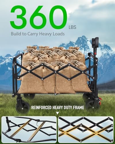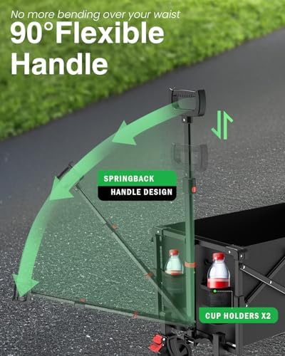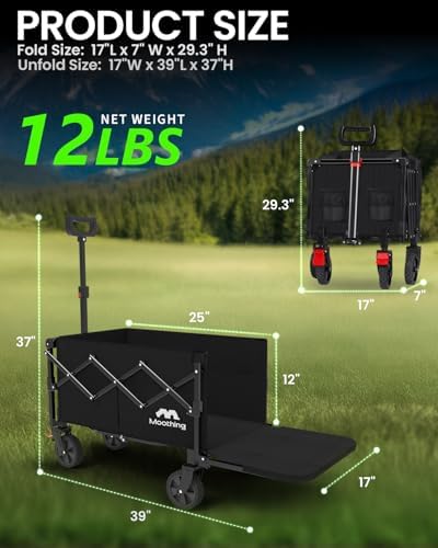 Moothing Collapsible Wagon, Foldable Wagons with Extended 40" L, Folding Wagon with Tailgate, Portable Lightweight Utility Wagons for Grocery, Shopping, Camping, Garden, Sports, Black D
