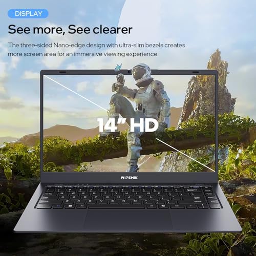 WIPEMIK Laptop Computer, 8GB RAM, 128GB SSD, Quad-Core N5095 Processor Laptop, 14" HD Display Laptops, Support WiFi 5, Bluetooth 5.0, USB 3.0, Webcam, Pre-Installed Office Pro Plus 2024