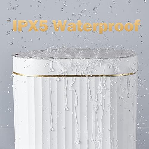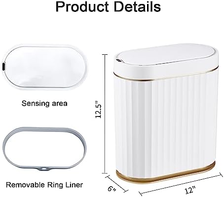 ELPHECO Automatic Motion Sensor Trash Can - 2 Gallon Slimline for Bathroom, Bedroom, Kitchen, Office - White with Gold Trim
