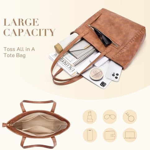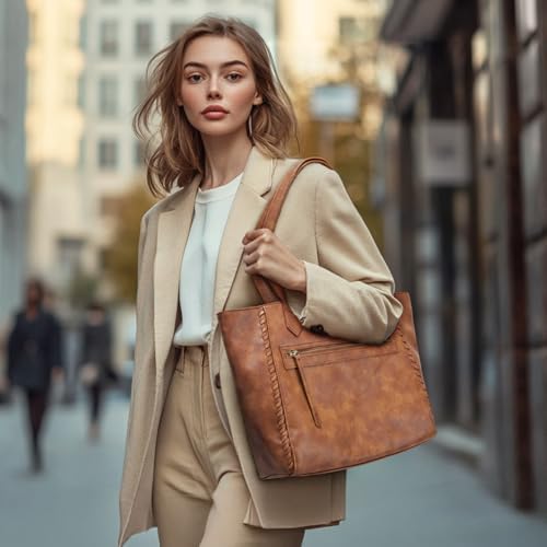 Missnine Tote Bag for Women, PU Leather Ladies Purses, Top-Handle Satchel Handbags with Braided Design for Work, Travel