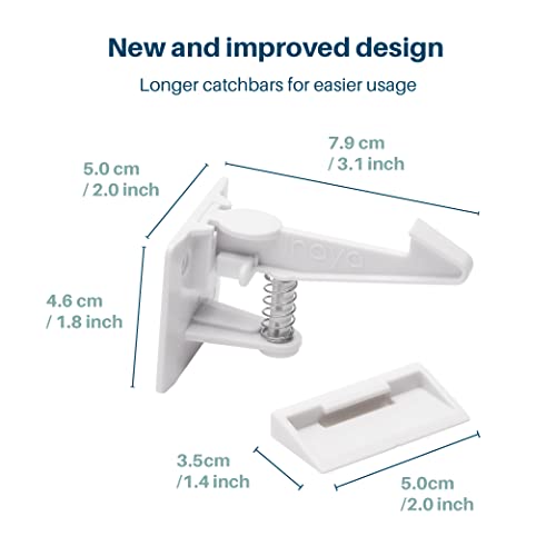 Inaya Cabinet Locks Child Safety Latches - Baby Proofing Cabinets & Drawers Locks - Child Proof Your Home - No Drilling & No Tools Required! (12 Pack - Extended Length Version)