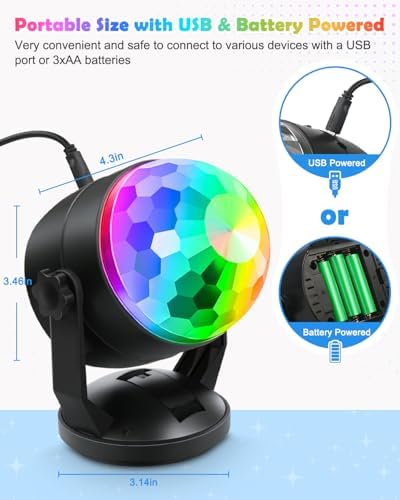 Luditek Disco Ball for Kids Dance Party Decor Strobe Lights, Sound Activated Led Light DJ w\/Remote, Kids Karaoke Parties Supplies Halloween Christmas Birthday Gifts for Boys Girls Room Home Indoor