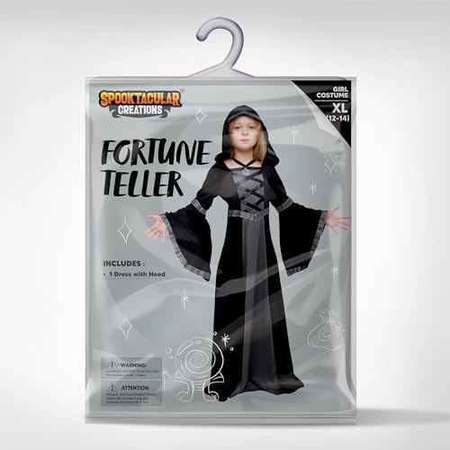 Spooktacular Creations Black Hooded Robe Costume for Girls, Fairytale Witch Costume Halloween Role-playing Party