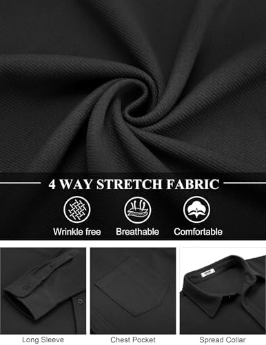 COOFANDY men's long sleeved button up shirt, wrinkle free jacket, elastic casual jacket