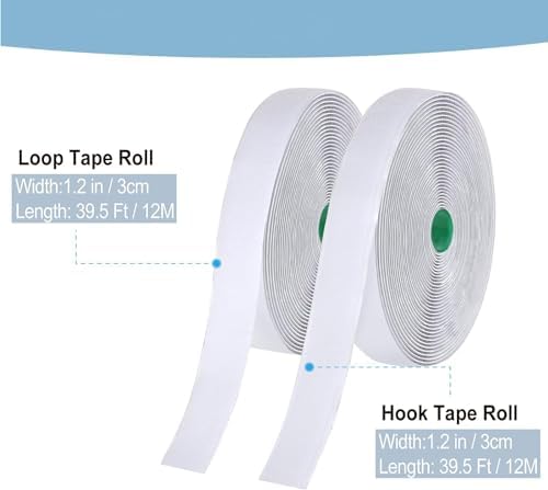 Strips with Adhesive Heavy Duty, 26.5Ft x1.2inch Tape, Nylon Sticky Back Fastener Roll,DIY Industrial Strength Self Adhesive Strips for Office,Classroom,Car, Couch Cushions-White