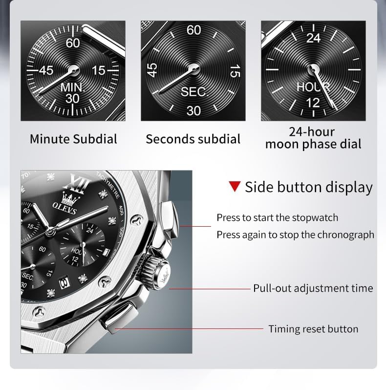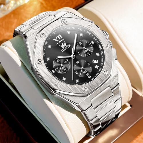 OLEVS Men's Watch Dress Stainless Steel Large Face Waterproof Luxury Men's Watch with Date Casual Blue/Black/Gold/Silver Reloj para Hombre