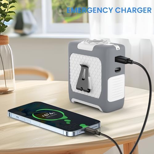Portable Fan Wearable Personal Fan with 5 Speed Max 55 Working Hours Low Noise Portable Neck Fans Cooling Waist Fans for Camping Traveling LED Power Display 10000mAh Rechargeable (White and Gray)