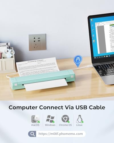 Phomemo Inkless Portable Printer for Travel - [Upgrade] Wireless Thermal Printer Compatible with Phone & Laptop, Bluetooth Printers Supports 8.5" X 11" Letter Thermal Paper, Come with Carr
