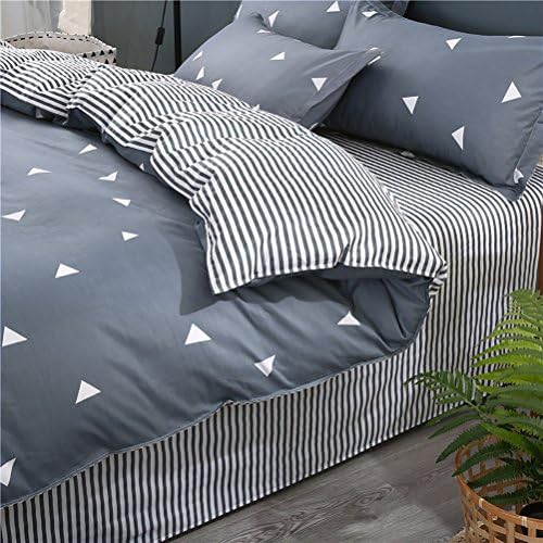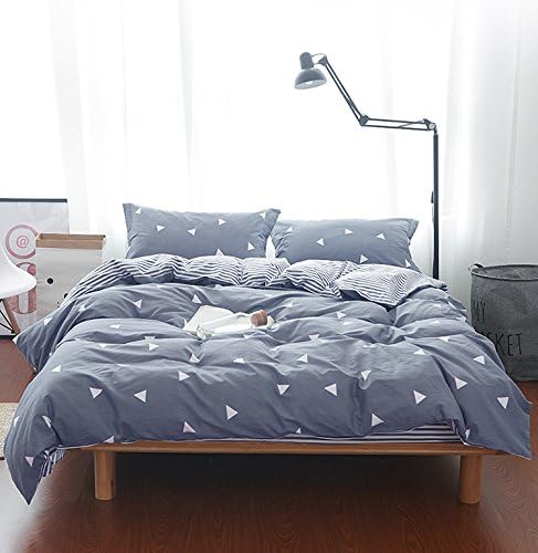 3 Pieces Duvet Cover Set Blue Gray with White Triangles - Ultra Soft and Easy Care Design Summer Bedding Duvet Cover Queen Size 90x90+ 2 Pillow Shams- 800 TC with Zipper Closure 4 Corner Ties
