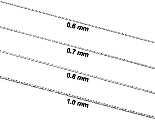 Kooljewerry 14k White Gold Box Chain Women's Pendant Necklace (0.6mm, 0.7mm, 0.8mm or 1mm/Length from 13 to 30 inches), White Gold, No Gems